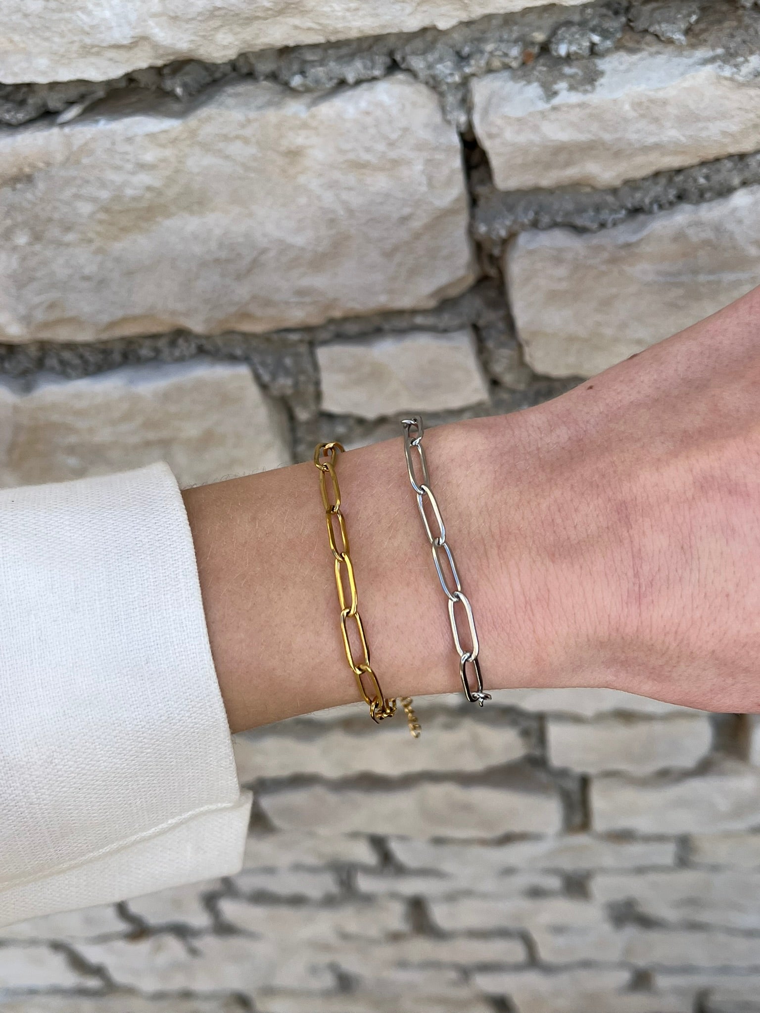 Elegant, simple and timeless – our paperclip bracelet is the perfect addition to any outfit. Made of stainless steel with 18k gold plating, it is water resistant and resistant to daily wear, while maintaining its shine. The minimalist design makes it ideal for wearing alone or in combination with other bracelets from our collection.