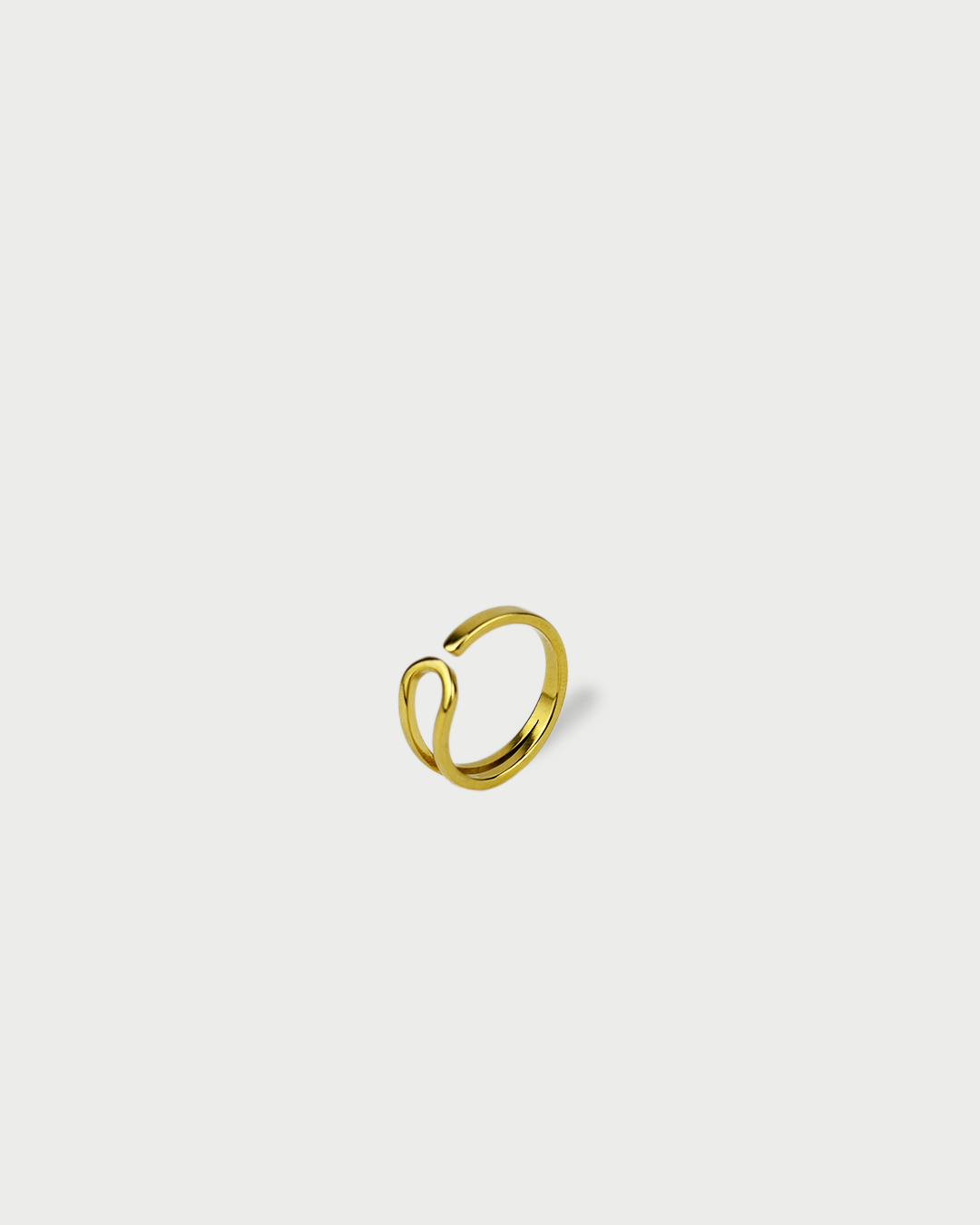 Minimalistički, ali dovoljno upečatljiv da zaokruži svaki styling, ovaj prsten savršen je primjer kako basic ne mora značiti dosadno. Izrađen od nehrđajućeg čelika, dolazi u pozlaćenoj varijanti te zadržava svoj sjaj bez obzira na to koliko ga nosite.
