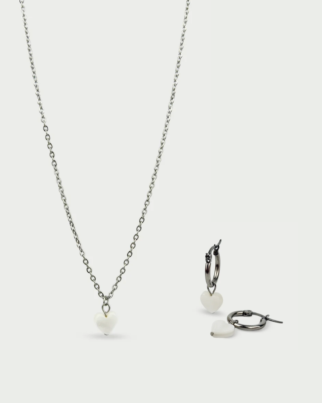 Hearts set (ogrlica & naušnice) savršen je izbor za Valentinovo i sve romantične trenutke. Set uključuje ogrlicu i naušnice sa sedef privjescima u obliku srca, koji nježno reflektiraju svjetlost i simboliziraju ljubav i pažnju prema detaljima.