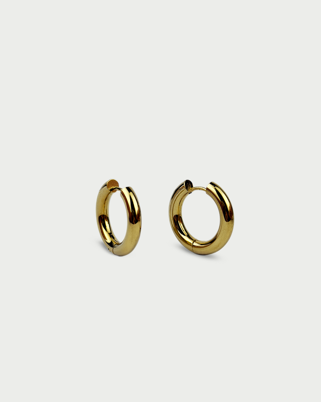 Ove klasične hoops naušnice su vječan i svestran komad nakita koji nikad ne izlazi iz mode. S jednostavnim, ali elegantnim dizajnom, savršene su za svakodnevno nošenje, ali i za dodavanje sofisticiranog detalja večernjim izdanjima. Izrađene od nehrđajućeg čelika s 18k pozlatom, ove naušnice su dugotrajne, otporne na tamnjenje i lako se uklapaju u svaki stil.