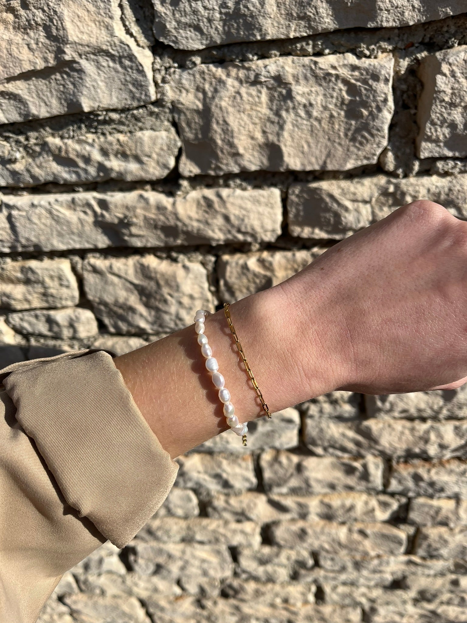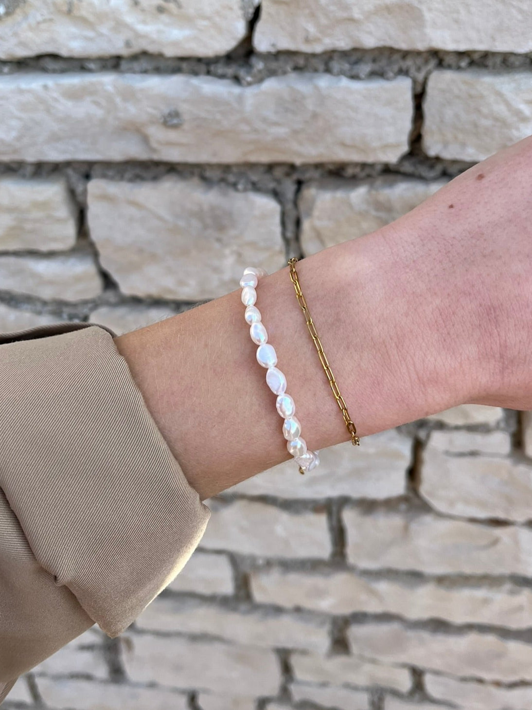 Ova elegantna narukvica s poliranim riječnim biserima donosi sofisticiranost i prirodnu ljepotu u tvoj svakodnevni izgled. S predivnim sjajem i glatkom površinom, riječna bisera dodaju dašak luksuza i elegancije, a minimalistički dizajn omogućuje lako kombiniranje s drugim komadima nakita. Savršen izbor za svaki dan ili posebne prigode kada želiš izgledati prefinjeno.