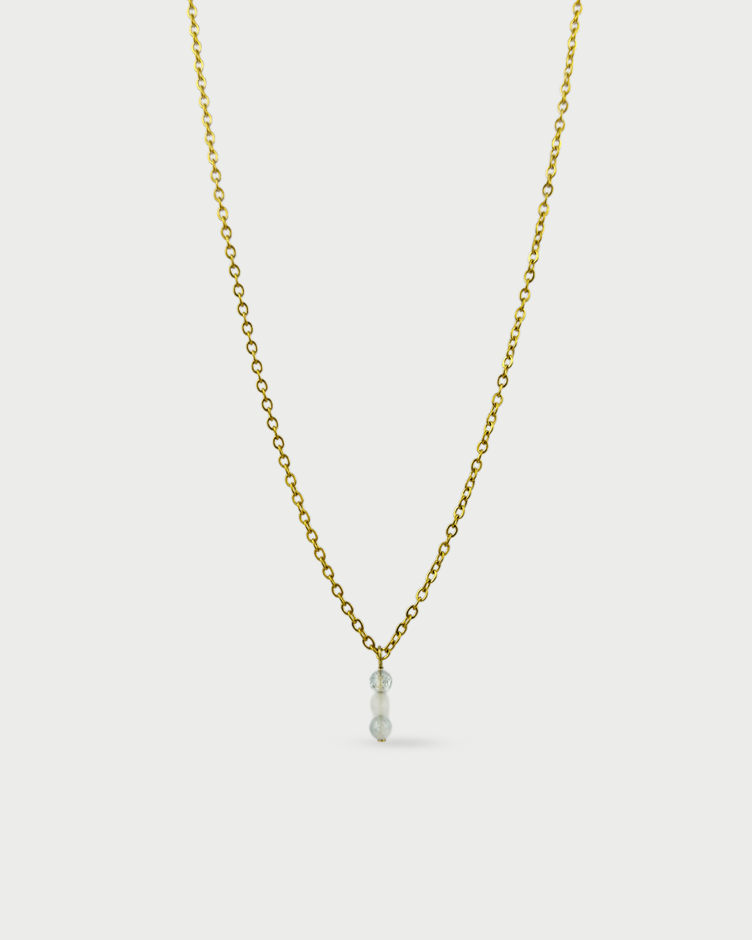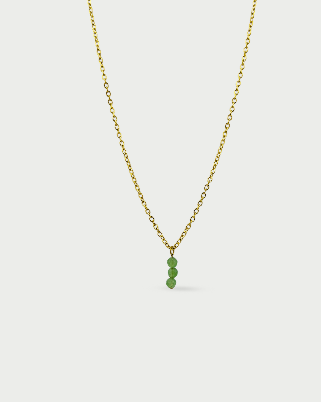 Suptilna elegancija spojena s prirodnom ljepotom - ova ogrlica s poludragim kamenom savršen je dodatak svakom outfitu. Poludragi kamen dodaje poseban dodir jedinstvenosti, čineći ovu ogrlicu idealnim komadom za svakodnevno nošenje ili posebne prilike.