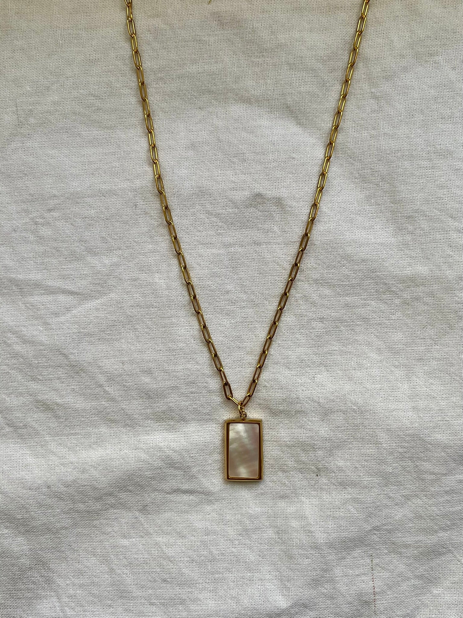 Ova elegantna ogrlica s nježnim sedef privjeskom na mini paperclip lančiću donosi suptilan sjaj i prirodnu ljepotu svakom izgledu. Minimalistički dizajn čini je idealnim dodatkom za svakodnevno nošenje, ali i za posebne prilike. Sedef reflektira svjetlost na suptilan način, dodajući dozu profinjenosti i ženstvenosti.