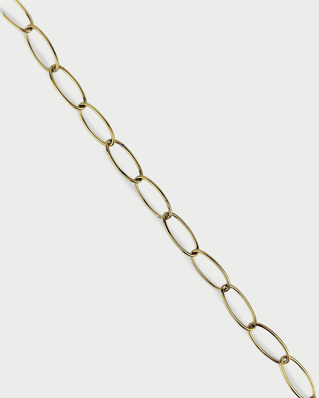 Elegantna i sofisticirana, naša ovalna narukvica savršen je dodatak svakom outfitu. Izrađena od nehrđajućeg čelika s 18k pozlatom, otporna je na vodu i svakodnevno nošenje, zadržavajući svoj sjaj. Minimalistički dizajn čini je idealnom za nošenje samostalno ili u kombinaciji s drugim narukvicama iz naše kolekcije.