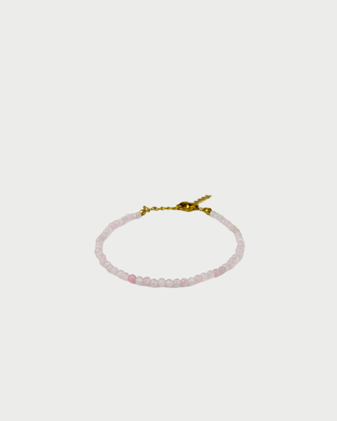 Ova elegantna narukvica s rozim kvarcom donosi nježnost i ljubavnu energiju u tvoj svakodnevni izgled. Rozi kvarc, poznat kao kamen ljubavi, potiče unutarnju harmoniju i emocionalnu povezanost. Nježna i sofisticirana, narukvica se savršeno uklapa u svaki outfit, bilo da je nosiš samostalno ili u kombinaciji s drugim komadima nakita.