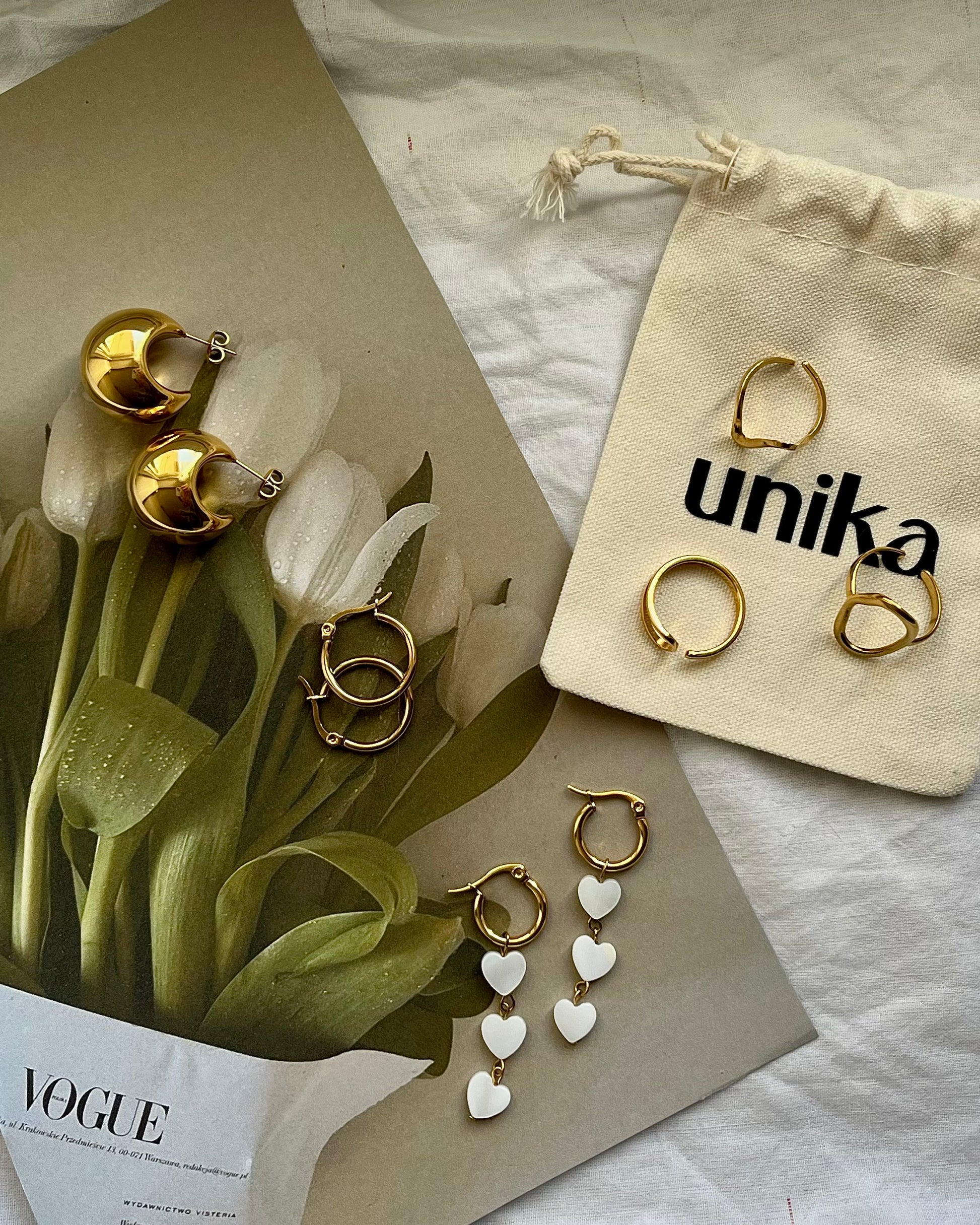 Ove statement naušnice su savršen izbor za one koji žele dodati hrabar i upečatljiv detalj svom izgledu. S modernim dizajnom koji privlači pažnju, ove naušnice bit će ključni komad svakog outfita. Izrađene od visokokvalitetnog nehrđajućeg čelika s 18k pozlatom, pružaju dugotrajan i luksuzan izgled, otporan na tamnjenje. Idealne su za posebne prigode, ali se mogu nositi i za podizanje svakodnevnih kombinacija.